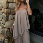 Női kétrészes szett – Aszimmetrikus ujjatlan felső – Lenge egyenes szárú nadrág: Az elegancia és a kényelem találkozik ebben a lenge kétrészes szettben. Az aszimmetrikus ujjatlan felső és az egyenes szárú nadrág laza, mégis kifinomult sziluettet kínál, amely bármilyen alkalomra tökéletes.