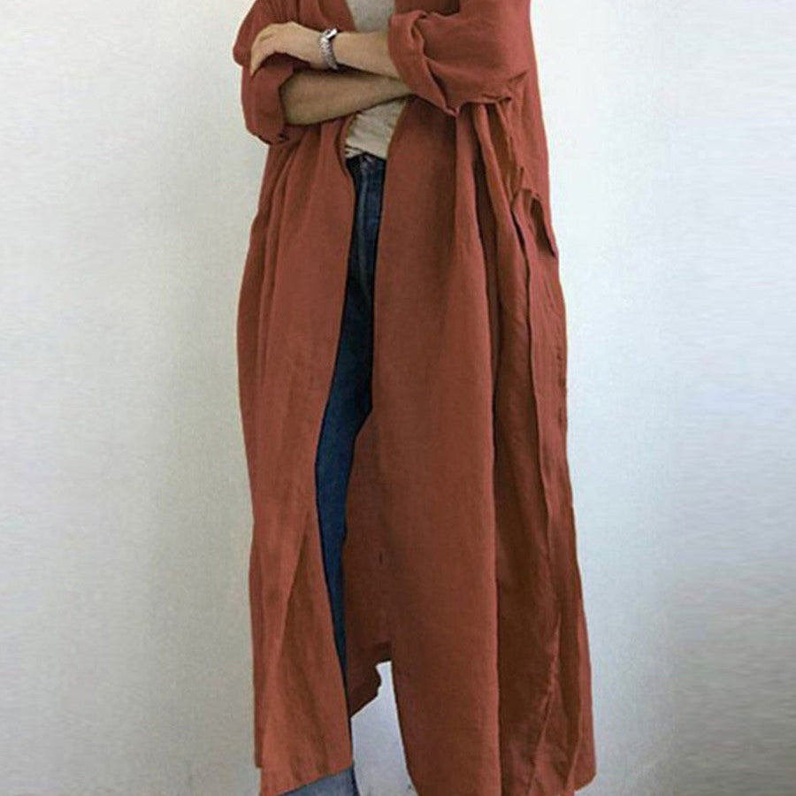 Női ballonkabát – Testhezálló szabású – Pamut – Hosszú – Öves – Dupla mellű