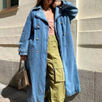 Női ballonkabát – Túlméretezett szabású – Farmer – Lábszárközépig érő – Dupla mellű