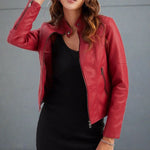 Emeld magasabb szintre a stílusod ragyogó piros bőrkabátunkkal, amely ruhatárad meghatározó darabja. Kiváló minőségű műbőrből készült, ez a kabát az elegáns dizájnt ötvözi a mindennapi viselettel, így kötelező darab minden divatkedvelő számára.