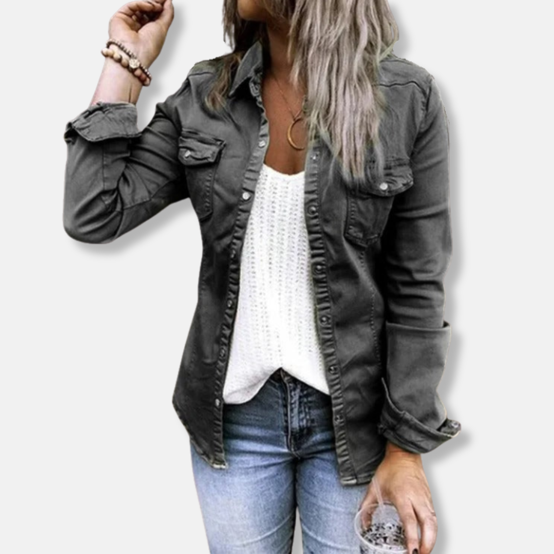 Női farmerdzseki – Testhezálló szabású – Gombos elejű – Mellkasi zsebek – Strukturált lezser stílus