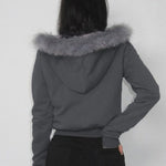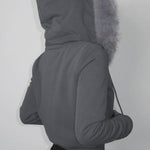 kapucnis kabát szőrme szegéllyel és cipzárral a derekán
