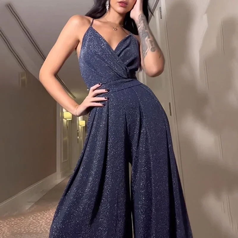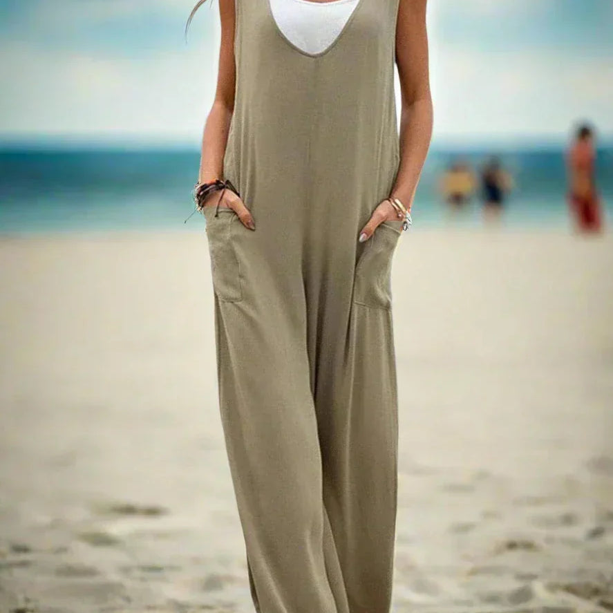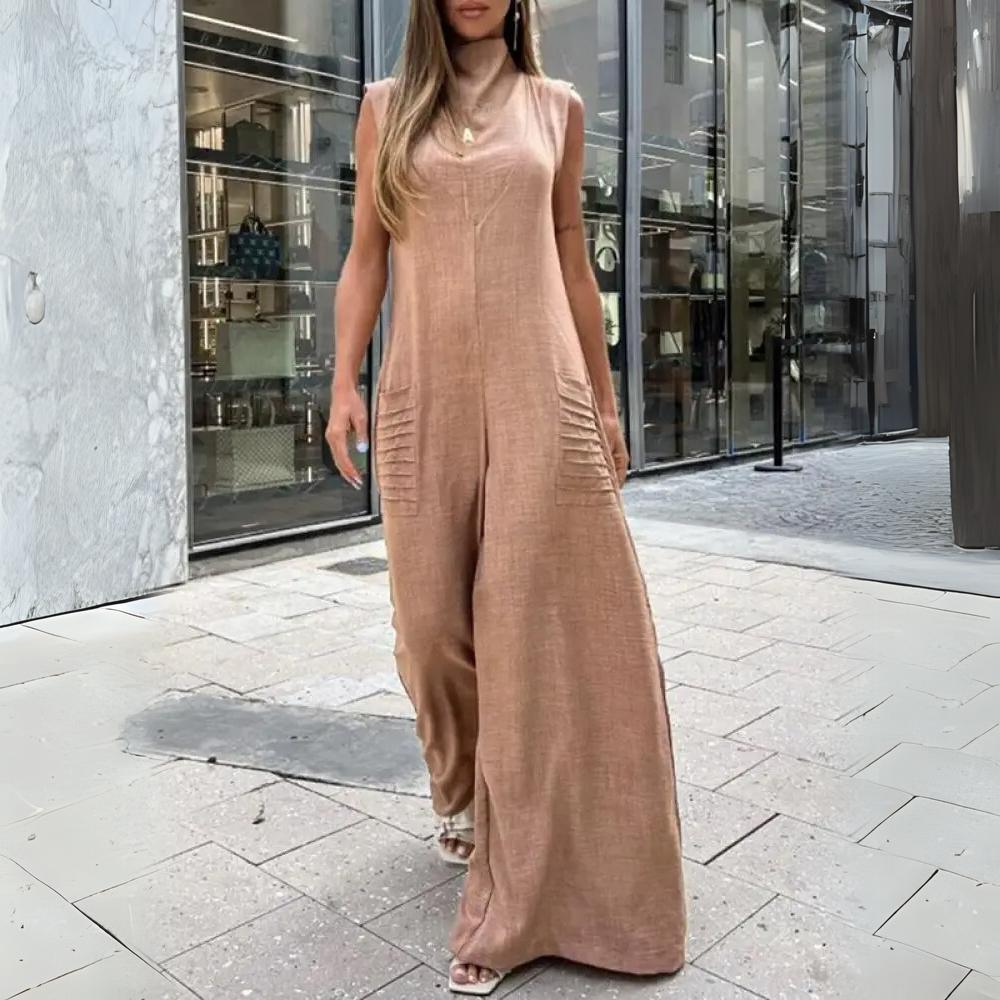 Női overál - Ujjatlan - Mélyen dekoltált - Laza és lenge szabású - Elegáns