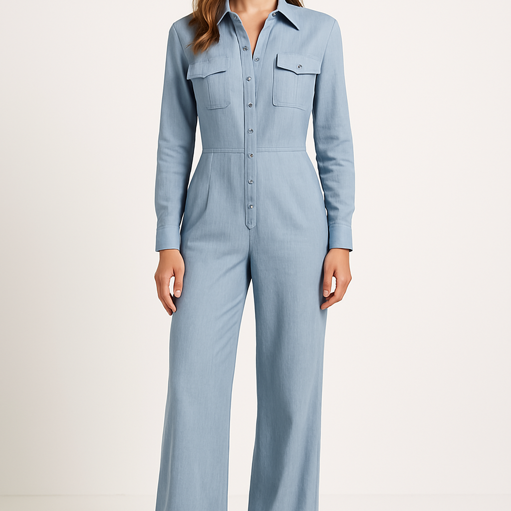 Női overál – Testhezálló szabású – Széles szárú – Hosszú ujjú – Inggallér