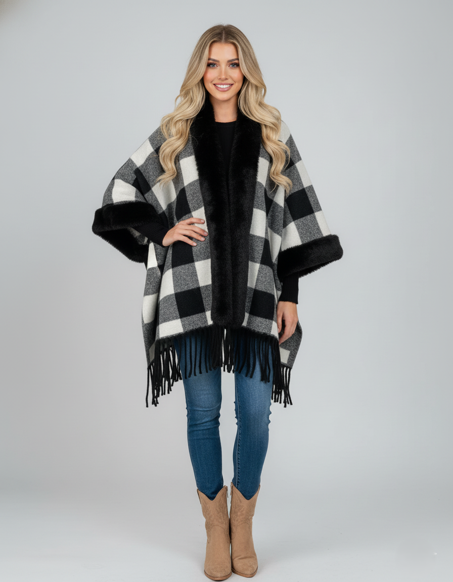 Maradj melegen és stílusosan ebben a prémium minőségű, puha műszőrme szegéllyel és kifinomult etnikai mintákkal díszített kendőkben. Bojtos szegélye bohém hangulatot kölcsönöz, így tökéletes réteges viselet a hűvös őszi és téli napokon. Egy luxus kendő, amely ötvözi a melegséget és az időtlen kifinomultságot.