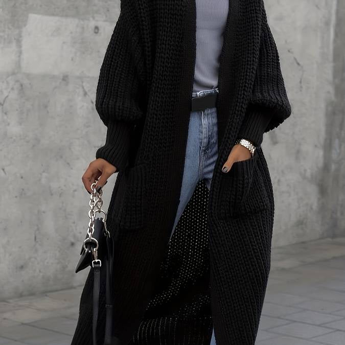 Női hosszú kardigán – Vastag kötésű – Túlméretezett szabás – Nyitott elejű – Ballonujjú
