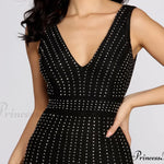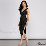 Mutasd meg elegáns megjelenésed Florence ruhánkban! V-nyakú, vékony pántos és testhez simuló fazonnal rendelkezik. A ruha térd alatt ér véget, és oldalán hasítékkal rendelkezik. Kötött anyagból készült, fényvisszaverő kövekkel díszített hálós panellel, mérsékelten rugalmas és teljesen bélelt. Párosítsd kedvenc fekete magassarkúddal a tökéletes megjelenésért!