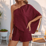 Női overál – Egy vállú – Texturált anyag – Laza szabású