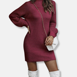 Ez a ruha testhezálló fazonú, elegáns garbóval és hosszú ujjakkal kiegészítve. Ideális mindennapi viseletre, kifinomult és kényelmes megjelenést kölcsönöz.