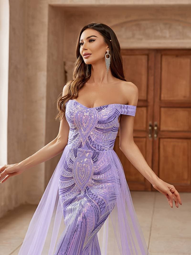 Varázsold el az estédet estélyi ruhánkkal! Ez a ruha az elegancia és a modern dizájn lenyűgöző keveréke, tökéletes különleges alkalmakra. A vállakat lefedő szív alakú nyakkivágás kiemeli a vállakat és keretezi a dekoltázst, míg a testhezálló felsőrész bonyolult gyöngyökkel és flitterekkel díszített, káprázatos, testhez simuló sziluettet alkotva.
