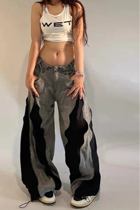 Harajuku Patchwork Széles Lábajú Farmernadrág