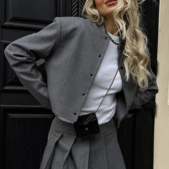 Elegáns és elegáns kétrészes szett: blézer és miniszoknya