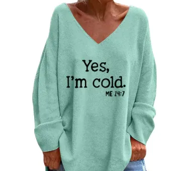 Női pulóver – Puha kötésű – Túlméretezett szabás – V-nyakú – Ejtett vállú – Szövegnyomat