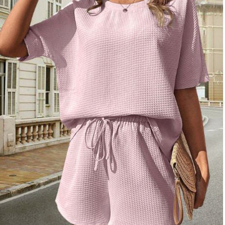 Női lezser szett - rövid ujjú, kerek nyakú felső + rugalmas derekú rövidnadrág