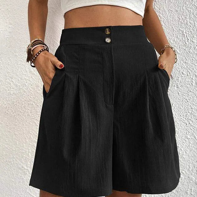 Női magas derekú rövidnadrág - Elegáns szabású - Gombos derékrész - Oldalsó zsebek