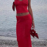 Szexi, váll nélküli maxi szoknya és trikó szett