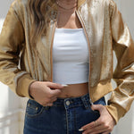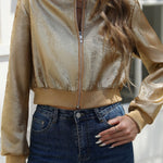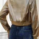 Hosszú ujjú, cipzáras kabát fényes fóliából