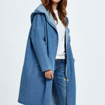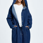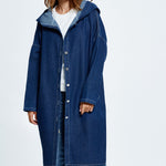 Hosszú, kapucnis farmerkabát