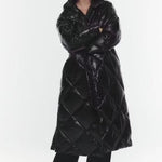 Hosszú, pufi kabát párnázott kapucnival