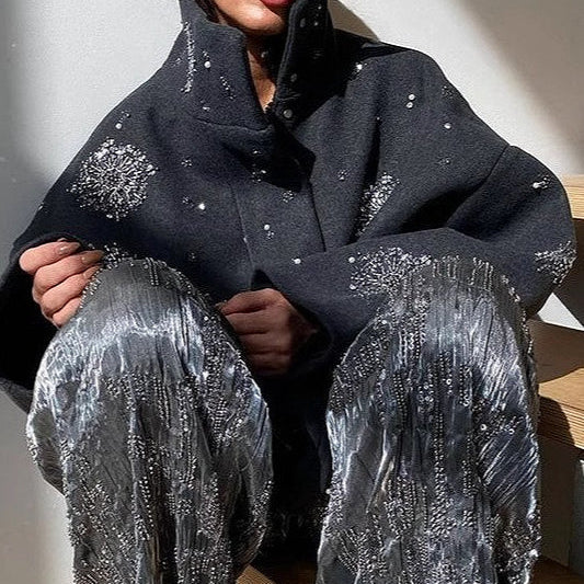 Vintage rövid gyapjúkabát állógallérral és gombokkal
