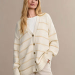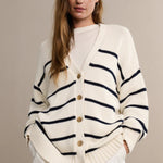 Csíkos, V-nyakú kötött mellény