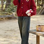 Gyapjú kardigán hímzéssel, vintage mosollyal
