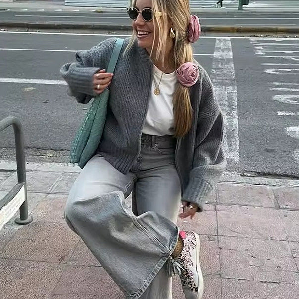 Egyszínű, bő szabású kardigán cipzáras mandzsettával