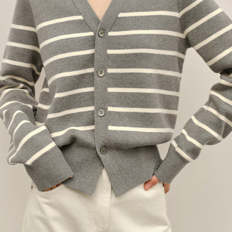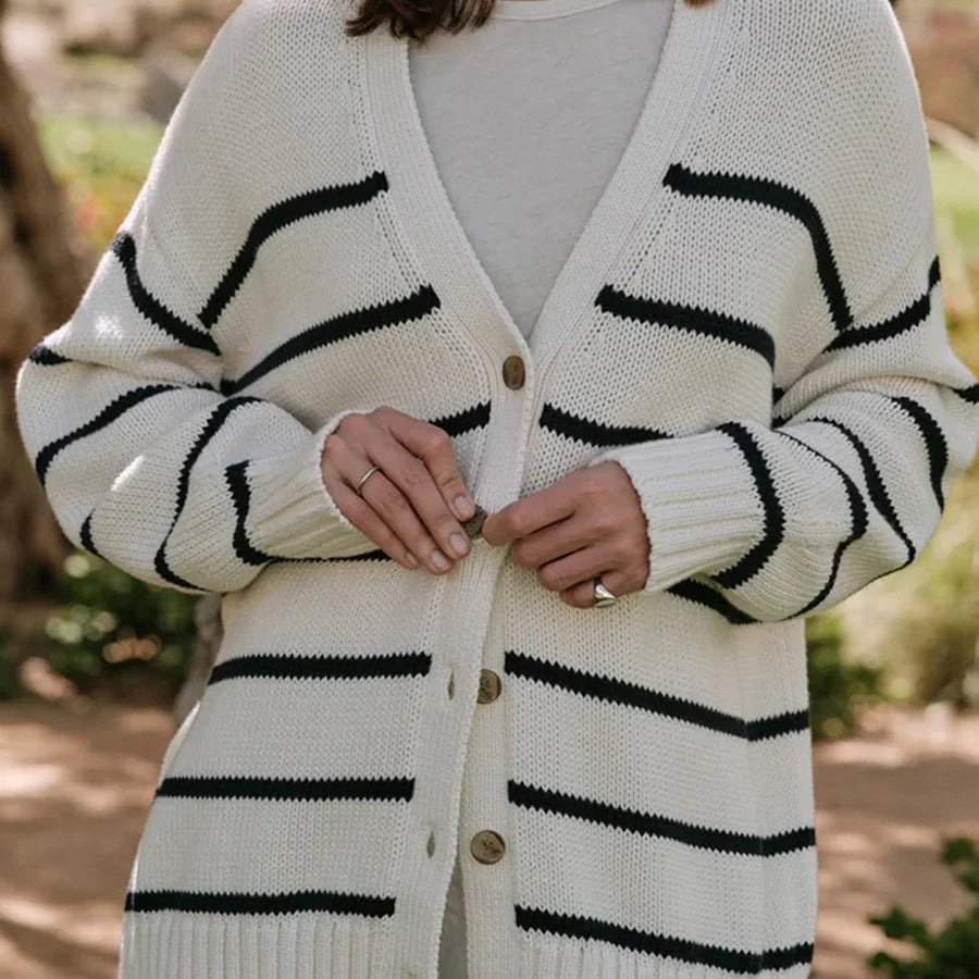 Csíkos pamut V-nyakú kardigán