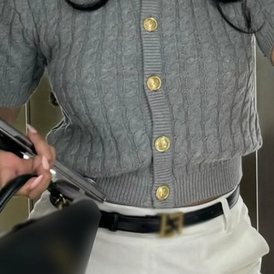 Egyszínű bársony kardigán színes gombokkal