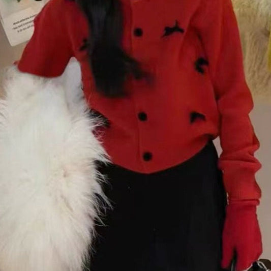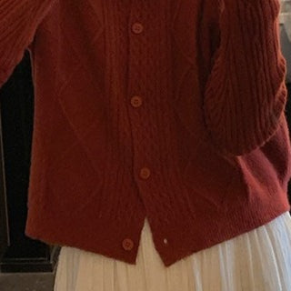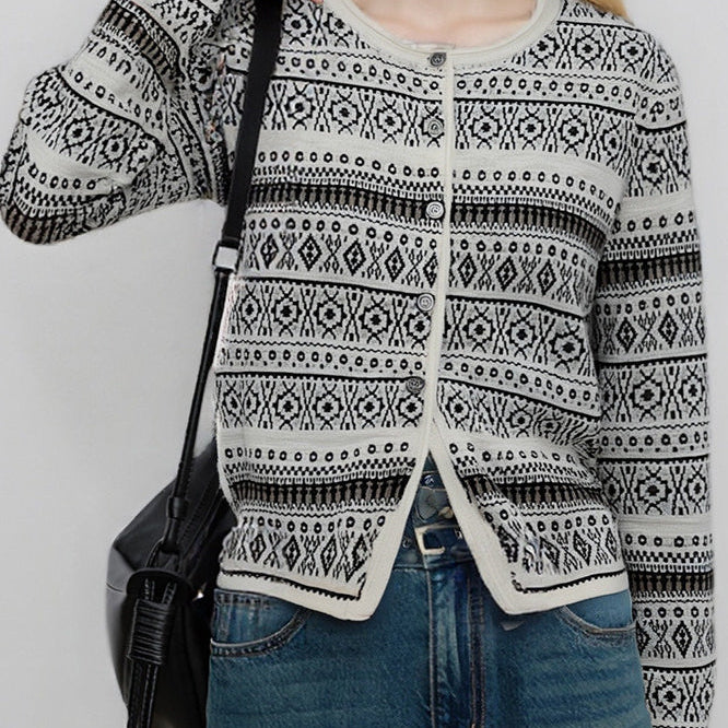 Vintage jacquard kötésű kardigán kerek nyakkal és gombokkal