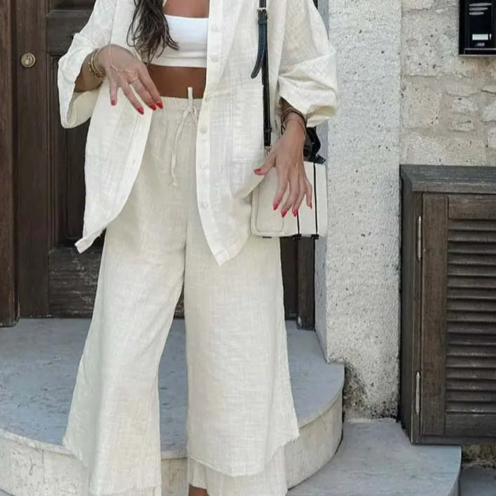 Kétrészes szett: szűk szabású, bő szárú nadrág tavaszra