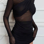 Hosszú ujjú, áttetsző kötött és ráncolt patchwork miniruha