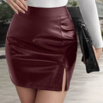 A-vonalú szoknya magas hasítékkal PU anyagból