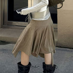 Elegáns, magas derekú, aszimmetrikus velúr szoknya