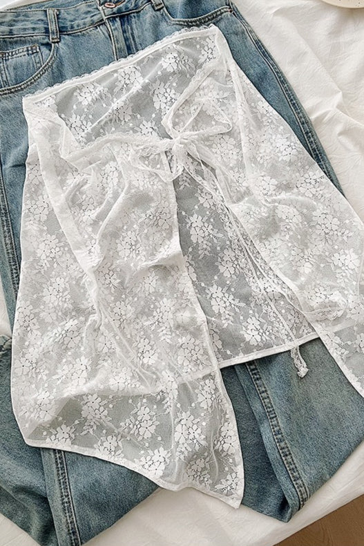 Fehér csipke kötésű szoknya megkötővel, sokoldalú midi szoknya