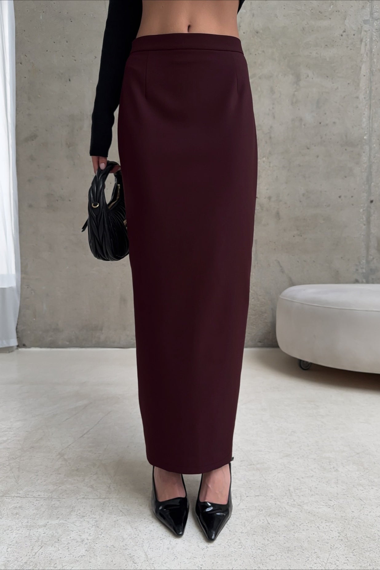 Hosszú, egyenes szoknya magas derekú és hasított szabással