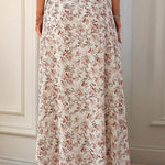 Testhezálló maxi szoknya digitális virágmintával és magas hasítékkal
