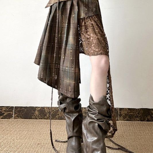 Wasteland kockás, csipkés aszimmetrikus szoknya