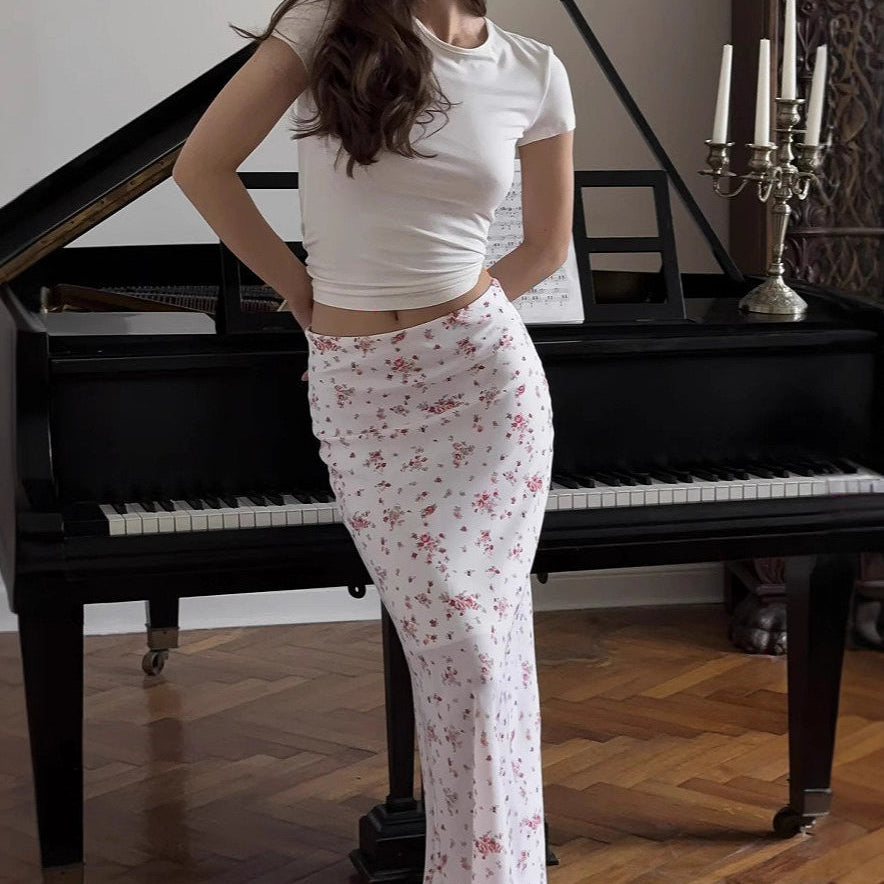 Magas derekú, virágmintás maxi szoknya hasítékkal