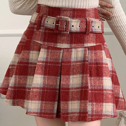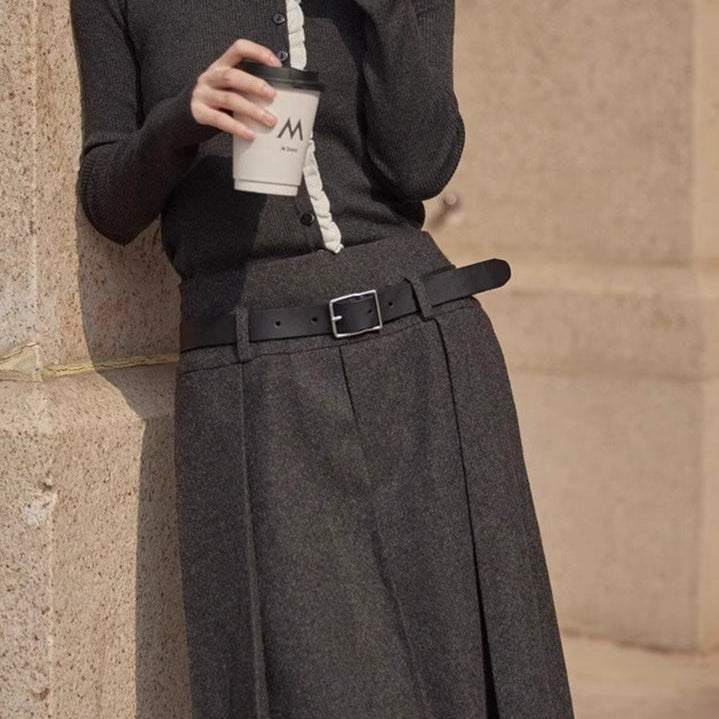 Preppy rakott szoknya sötétszürke gyapjúkeverékből