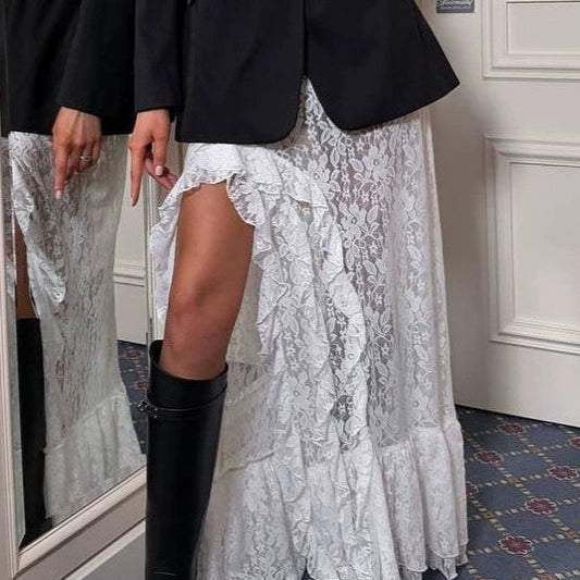 Plus size sellő mintás, magas derekú, virágmintás csipkeszoknya