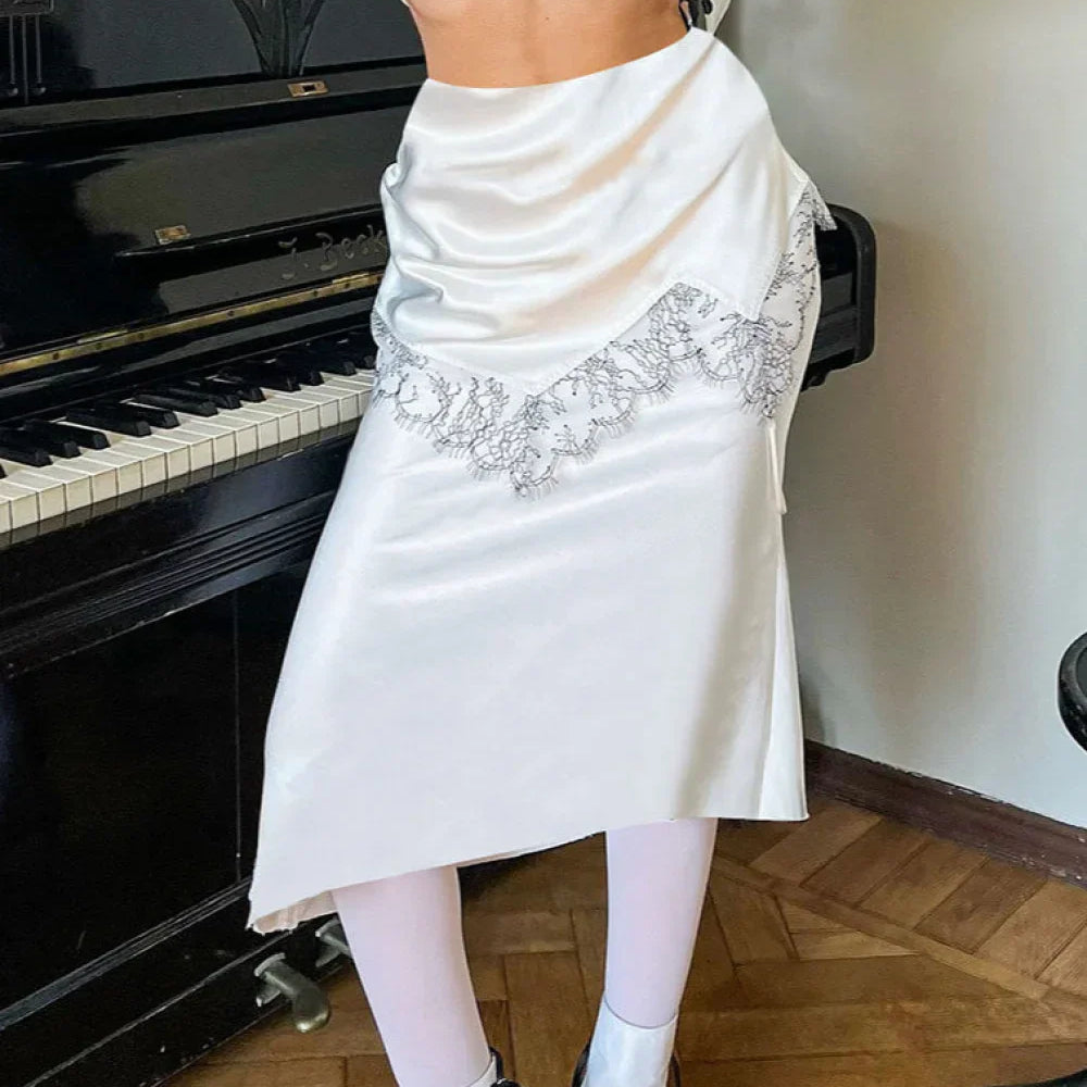 Retro karcsúsított szoknya csipkebetétekkel és színblokkolásokkal