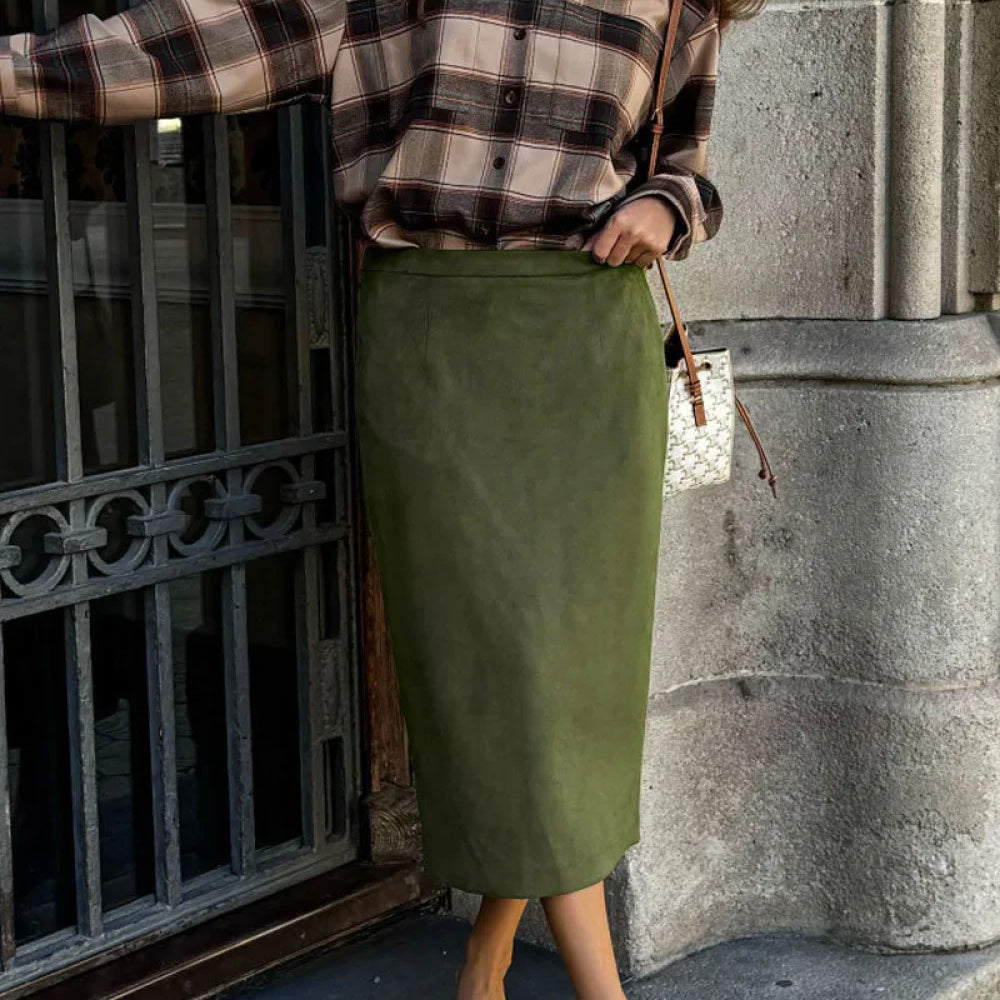 Retro egyenes szabású maxi szoknya kockás pamutból