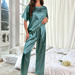 Kényeztesd magad tiszta kényelemmel és stílussal luxus szatén pizsama szettünkkel. Azoknak terveztük, akik értékelik a kényelem és az elegancia tökéletes keverékét, ez a szett gyengéden simogatja a bőröd a pihentető alvásért, miközben könnyedén sikkes megjelenést biztosít.